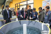 뉴스다 최광묵 기자 | 강원특별자치도는 강원형 K-연어 생태계 조성의 첫 단계로 2월 26일(목) 10시 10분, 도 내수면자원센터에서‘K-어린연어생산센터 준공식’을 개최했다. 이날 행사에는 김진태 도지사, 해수부, 관련 단체, 도의원 등 100여 명이 참석하며, K-연어산업 비전과 본격 가동계획을 발표했다. K-어린연어생산센터는 총사업비 60억 원(국비 30억 원, 도비 30억 원)이 투입된 사업으로, 해양수산부 주관‘친환경양식어업육성사업’공모에 선정돼 건립됐다. 센터는 연면적 1,599㎡, 지상 2층 규모로 순환여과시스템 7개 모듈 사육조 30개, 부화실, 실험실, 분석실 등을 갖추고 있으며, 연간 5g급 연어 종자 200만 마리 생산이 가능하다. 도는 센터에서 생산한 건강한 연어 종자를 도내 내수면 양식어가에 공급하고 양식어가는 이를 100g급 스몰트로 성장시킨 뒤, 해수양식 산업단지에서 5kg급 성어로 키워 최종 출하하는 단계별 생산체계를 구축할 계획이다. 도는 앞서, 국내 지방자치단체 최초로 연구용 발안란을 도입, 담수에서 부화율 97% 이상을 달성하고 2023년 어린연어(