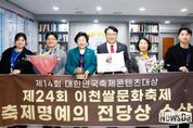 뉴스다 최광묵 기자 | 대한민국 대표 농경문화 축제인 ‘이천쌀문화축제’가 24일 서울 전쟁기념관에서 열린 ‘2026 제14회 대한민국축제콘텐츠대상’ 시상식에서 ‘축제 명예의 전당상’을 수상했다. 이천시는 2013년 제1회 시상식을 시작으로 올해 14회에 이르기까지, 코로나19로 인한 축제 미개최 기간을 제외하고 참여한 모든 회차(통산 12회)에서 단 한 번의 예외 없이 수상을 하는 대기록을 세웠다. 이번 심사에서 이천쌀문화축제는 전통 농경문화를 재해석한 11개 테마 마당과 관람객 편의시설 확충에서 높은 점수를 받았다. 특히 반도체 산업과 쌀을 연계한 공간 구성, 다회용기 전면 도입을 통한 ‘친환경 축제’ 모델 제시가 결정적인 수상 요인으로 꼽혔다. 김경희 이천시장은 “이번 수상은 시민과 관광객이 함께 만든 값진 성과”라며 “이천쌀의 우수성을 알리고 전통문화를 계승하는 세계적인 글로벌 축제로 도약시키겠다”라고 밝혔다. 한편, 제25회 이천쌀문화축제는 오는 10월 중 5일간 이천시 일원에서 개최될 예정이다.