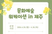 뉴스다 최광묵 기자 | 제주특별자치도와 한국광역문화재단연합회가 주최하고 제주문화예술재단(이사장 김석윤)이 주관하는 2026년 ‘문화예술 워케이션 in 제주’ 1차 프로그램이 오는 20일부터 4월 30일까지 운영된다. 일(work)과 휴가(vacation)를 병행하는 제주 워케이션은 2023년 시범 운영 이후 올해로 4년 차를 맞이했다. 이번 1차 운영에는 한광연 회원기관 종사자 20여 명이 제주 원도심을 거점으로 새로운 업무 환경을 경험한다. 참여자들은 원도심에 소재한 제주소통협력센터를 거점 오피스로, 재단이 운영하는 예술공간 이아와 산지천갤러리를 위성 오피스로 활용해 근무할 예정이다. 또한, ‘제주도립김창열미술관’ 전시 관람과 ‘환상숲곶자왈’ 체험 등 문화탐방 프로그램을 통해 제주의 문화와 자연을 경험하게 된다. 본 프로그램은 2023년 11월 제주도와 한광연이 체결한 업무협약에 기반하며, ▲문화예술 기반의 협력·교류를 위한 공동사업 발굴 ▲제주 지역문화 자원활용 상호 교류 등을 주요 내용으로 하고 있다. 재단 김석윤 이사장은 “올해로 4년 차를 맞이한 제주 워케이션은 문화예술