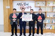 뉴스다 최광묵 기자 | 양주시가 지난 14일 시장실에서 ㈜북부종합상사 타이어프로로부터 이웃돕기 성품으로 백미 4kg 500포(800만 원 상당)를 기탁받았다. 이번 기탁은 금호타이어 신제품 출시를 기념해 지원받은 물품을 지역의 어려운 이웃을 돕는 데 사용하고 싶다는 승준배 대표의 뜻에 따라 마련됐다. 특히 ㈜북부종합상사 타이어프로는 지난 2024년 2월 개업 당시에도 축하 화환 대신 받은 백미 150포를 전량 기탁하는 등 창업 초기부터 나눔 문화 확산에 앞장서 왔다. 승준배 대표는 “기업 활동을 통해 얻은 혜택을 지역 사회와 나누는 것은 당연한 역할이라고 생각한다”며, “신제품 출시를 계기로 마련한 이번 성품이 우리 주변의 소외된 이웃들에게 따뜻한 위로와 힘이 되길 바란다”고 소감을 밝혔다. 시 관계자는 “사업의 의미 있는 순간마다 잊지 않고 이웃을 먼저 살펴주시는 승준배 대표님의 따뜻한 마음에 깊이 감사드린다”며, “보내주신 귀한 정성은 도움이 필요한 시민들에게 잘 전달하여 모두가 행복한 나눔 도시 양주를 만드는 데 소중히 사용하겠다”고 화답했다. 이날 기탁된 성품은 경기 사회복지공동모금회를