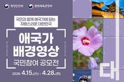 뉴스다 최광묵 기자 | 국민과 함께 애국가에 담는 자랑스러운 대한민국 애국가 배경영상 국민참여 공모전 2026.4.15.(수)~4.28.(화) ■ 참가자격 대한민국 국민 누구나 참여 가능 ■ 시상내용 총 상금 1억 3500만 원 ■ 문의처 ☎ 070-8806-1021 [뉴스출처 : 문화체육관광부]