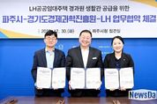 뉴스다 최광묵 기자 | 파주시는 30일 경기도경제과학진흥원, 한국토지주택공사 경기북부지역본부와 경과원 파주시 이전에 따른 엘에이치(LH) 공공임대주택 생활관 지원을 위한 업무협약을 체결했다고 밝혔다. 이번 협약은 경과원의 단계적 이전에 앞서 직원들에게 안정적인 정주환경을 제공함으로써 거주지 이전에 따르는 비용 부담을 최소화하기 위한 세 기관간 협력을 강화하는 차원에서 추진됐다. 협약에 따라 한국토지주택공사는 운정신도시 내 공공임대주택 중 보유 공실 일부를 생활관 용도로 활용할 수 있도록 공급 방안을 검토하고, 파주시는 입주 절차와 행정적 지원을 담당한다. 경과원은 대상자 선정과 운영 관리 등 내부 절차를 마련해 실제 입주가 차질 없이 진행될 수 있도록 준비할 계획이다. 김경일 파주시장은 “이번 협약이 파주에 둥지를 틀게 될 경과원 직원들이 걱정 없이 생활할 수 있는 실질적인 지원이 될 것으로 기대한다”라고 말했다. 김현곤 경기도경제과학진흥원장은 “직원들의 주거 부담을 줄이는 것은 이전 성공의 핵심 요소”라며 “세 기관이 함께 만들어가는 협력체계가 앞으로도 좋은 모델이 되길 바란다”라고 전했다.