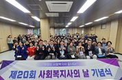 뉴스다 최광묵 기자 | 의정부시는 3월 31일 의정부시사회복지사협회가 의정부시사회복지회관에서 ‘2026년 제20회 사회복지사의 날 기념식’을 개최했다고 밝혔다. 이번 행사는 3월 30일 사회복지사의 날을 맞아 시민의 복지 증진과 지역사회 발전을 위해 헌신해 온 사회복지사들의 공로를 기리고, 그 사명과 가치를 되새기기 위해 마련됐다. ‘우리는 사회복지사 입니다’를 주제로 열린 이날 기념식에는 지역 복지 현장에서 활동하는 100여 명의 사회복지사와 내빈이 참석해 뜻깊은 시간을 함께했다. 행사는 유공자 표창을 비롯한 기념 순서로 진행됐으며, 참석자 간 소통과 화합을 위한 교류의 시간도 마련됐다. 이날 표창은 지역사회 복지 증진과 사회복지 발전에 기여한 유공자 15명에게 수여됐다. 훈격별로는 의정부시장 2명, 국회의원 4명, 의정부시의회 의장 2명, 경기도사회복지사협회장 2명, 의정부시사회복지사협회장 5명이다. 사회복지사의 날은 ‘사회복지사 등의 처우 및 지위 향상을 위한 법률’ 제정을 기념해 마련된 날로, 사회복지사의 자긍심을 높이고 현장의 노고를 격려하는 의미를 담고 있다. 이날 행사는