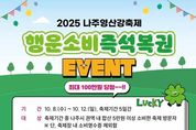 뉴스다 최광묵 기자 | 전라남도 나주시가 ‘2025 나주영산강축제’를 찾는 시민과 관광객들에게 특별한 즐거움과 함께 지역 상권 활력을 불어넣기 위해 ‘행운 소비 즉석 복권 이벤트’를 진행한다. 나주시(시장 윤병태)는 오는 10월 8일부터 12일까지 열리는 영산강축제에서 축제 방문객들이 지역 상권에서 소비하면 즉석 복권을 통해 나주사랑상품권을 받을 수 있는 이벤트를 마련했다고 1일 밝혔다. 이번 이벤트는 경기침체로 어려움을 겪고 있는 소상공인의 경영 안정과 골목상권 활성화를 위해 기획했다. 축제 기간 나주시 5개 권역(빛가람동, 남평읍, 영산포, 읍성권, 그 외 읍면동)에서 합산 5만 원 이상 소비한 방문객이면 누구나 참여할 수 있으며 축제장 내 소비 영수증은 제외된다. 소비 권역이 많을수록 당첨 규모가 증가하며 1개 권역에서 5만 원 이상 소비 시 30만 원짜리 즉석 복권, 2개 권역에서 소비 시 최고 50만 원짜리 즉석 복권, 그리고 3개 권역 이상에서 소비 시 최고 100만 원짜리 즉석 복권을 받는 방식이다. 참여자는 소비 영수증을 축제장 내 운영 부스에 제출하면 권역 수에 따른