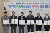 뉴스다 최광묵 기자 | 청주시는 13일 임시청사 직지실에서 청주상공회의소 및 지역 내 주요 기업과 청주사랑상품권(청주페이) 활성화를 위한 업무협약을 체결했다. 이날 협약식에는 이범석 청주시장과 차태환 청주상공회의소 회장, 박호현 SK하이닉스㈜ 부사장, 김영대 ㈜LG화학 청주공장 대외협력팀장, 최상운 에코프로 부사장, 김용술 ㈜LG에너지솔루션 오창주재임원, 이규득 ㈜심텍 상무가 참여했다. 협약은 지역경제 활성화와 민생경제 회복을 위해 소상공인과의 상생 협력을 강화하고, 지역 내 소비를 촉진하기 위해 마련됐다. 협약의 주요 내용은 △직원들에게 지급하는 선택적 복지제도(복지포인트, 포상금 등) 중 일부를 청주페이로 지급하는 방안 마련 △설·추석 등 명절 기간 전통시장 장보기 행사 추진 △청주페이 사용 적극 홍보 등이다. 특히, 지난 9일 복대가경시장에서 열린 설맞이 전통시장 장보기 행사에는 이번 협약에 참여한 기업 중 에코프로와 ㈜심텍 임원들이 이범석 청주시장과 함께 참여해 지역 상생의 의미를 더했다. 이 시장은 “지역경제 활성화를 위한 이번 협약에 적극 동참해준 기업들의 지역사랑 실천