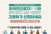 뉴스다 최광묵 기자 | 외국인근로자(E-9)와 함께 일하고 싶은 사업장은 고용허가 신청하세요. - 신청기간 2025.11.24.(월)~11.28.(금) ■ 고용허가제 신청할 수 있는 업종은? 제조업, 조선업, 건설업, 농축산·어업, 서비스업, 임업, 광업 고용허가서 발급신청서를 작성하여 고용24 누리집 또는 고용센터에 제출하세요. ■ '25년 5회차 신청 일정은? '25.11.24.(월)~11.28.(금): 사업장 고용허가 신청 → 12.12.(금): 사업장 선정 발표 → 제조·조선·광업 12.15.(월)~17.(수) 그 외 12.18.(목)~12.22.(월): 고용허가서 발급 → '26.1월~: 외국인 근로자 입국 [뉴스출처 : 고용노동부]