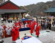 뉴스다 최광묵 기자 | 의정부시는 2월 26일 (재)의정부문화재단이 주최하고 대한불교조계종 회룡사가 협력해 개최한 ‘2026 의정부 태조 어진 의례’를 통해 태조 어진 제작 완료를 공식적으로 알렸다. 이번 행사는 의정부와 깊은 인연을 지닌 태조 이성계의 역사적 의미를 재조명하고, 태조 어진 제작 완료를 계기로 도시 정체성을 역사문화 자산으로 확장하고자 마련됐다. 행사는 총 3부로 구성됐다. 1부는 의정부시청 태조홀에서 ‘의정부 역사문화포럼: 조선 태조‧태종 재회의 의미’를 주제로 열렸다. 태조 이성계 어진 제작에 참여한 권오창 화백의 제작 완료 보고와 함께 의정부 태조 어진 제작의 의미를 조명하는 발제와 토론이 진행됐다. 또한 의정부문화재단이 준비 중인 태조와 태종의 상봉을 주제로 한 창작 뮤지컬 제작 계획도 발표됐다. 2부 행사는 시청 본관 입구에서 태조 어진 제작 완료를 알리는 고유제로 진행됐다. 고유제는 중대한 일을 시작하거나 마친 뒤 그 사실을 신명이나 선현에게 알리는 전통 의례로, 이날 의례는 제작이 완료된 태조 어진을 기념하는 자리로 엄숙하게 거행됐다. 고유제 이후 어진은 회룡사로