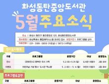 뉴스다 최광묵 기자 | 화성동탄중앙도서관이 어린이날과 가정의 달을 맞아 5월 한 달간 도서관 이용자와 시민을 대상으로 자료실과 3층 공공의 마당 등에서 다양한 문화행사를 운영한다. 이번 행사는 화성동탄중앙도서관 개관 이후 처음 맞는 어린이날과 가정의 달을 기념해 마련됐다. 5월 2일부터 4일까지는 어린이날 기념 행사 ‘화성동탄중앙도서관 책소풍’을 운영하고, 5월 한 달 동안은 가족 친화형 체험·전시·독서문화 프로그램을 중심으로 다채로운 행사를 이어갈 예정이다. 어린이날 행사 기간에는 어린이를 위한 인형극 '돈키호테의 모험 이야기' 공연을 비롯해 도서관 로비에 어린이날 기념 포토존을 운영하고, 야외 공공의 마당에는 가족 놀이존을 마련한다. 이와 함께 독서 낱말풀이, 코리요 캐릭터 색칠놀이, 뽑기, 나만의 배지 만들기 등 대출자 참여 이벤트도 진행된다. 또한 실감형 콘텐츠를 활용한 ‘나만의 미니북 만들기’ 키트를 제공해 어린이들이 책과 더욱 친근하게 만날 수 있도록 했다. 가정의 달을 맞아 5월부터 6월까지 어린이자료실 일부 공간을 시민 가족에게 분양하는 서가 체험 프로그램 ‘우리 가족 책 아지트’도 운영한다.