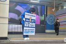 뉴스다 최광묵 기자 | ▲병점역 아침 출근 인사를 하는 김경희 화성시장 예비후보(사진제공= 김경희 선거사무소)