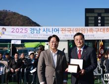 뉴스다 류대현 기자 | 합천군은 11월 22일 합천군민체육공원 인조1구장에서 열린 ‘2025 경남 시니어 전국(위임)족구대회’가 성황리에 마무리됐다고 24일 밝혔다. 경상남도족구협회 주최, 대한민국족구협회‧경상남도족구협회‧합천군족구협회 주관으로 진행된 이번 대회에는 전국의 시니어 족구 동호인 45팀, 300여 명이 참가해 열띤 경기를 펼쳤다. 개회식에는 김윤철 합천군수, 정봉훈 군의장, 장진영 도의원, 유달형 체육회장, 이대재 대한민국족구협회장, 이재현 경상남도족구협회장, 박재영 합천군족구협회장 등 내빈이 참석해 의미를 더했다. 또한 이날 대한민국족구협회에서 족구발전 공로에 대한 감사패를 김윤철 합천군수에게 수여해 훈훈한 분위기를 더했다. 대회결과, ▲60대이상부 창원위드60(안경수, 박경주, 박경림, 이인수, 이상우) ▲65세이상부 울산65(강병노, 김영호, 김재우, 김종인, 박성태, 왕삼천, 이대우) ▲70세이상부 부산재미사마(김정태, 김태선, 장오환, 황대선) ▲경남60대부 의령60(김경도, 정항석, 강동준, 최승동, 윤해용, 전원재) 에서 우승의 영광을 차지했다. 특히 합천팀에서 ▲70세이상부 수려한