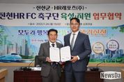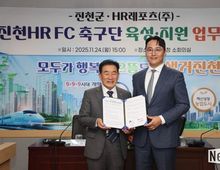뉴스다 류대현 기자 | 충북 진천군은 군청 소회의실에서 HR레포츠 주식회사(대표 신호룡)와 ‘진천 HR FC 축구단 육성 및 지원을 위한 업무협약’을 체결했다고 24일 밝혔다. 이번 협약은 2026년 대한축구협회 K4 리그 참가를 앞두고, 진천 HR FC의 안정적인 운영 기반을 마련하고, 지역 스포츠 발전을 위한 협력 체계를 구축하기 위해 추진됐다. 협약식에는 송기섭 진천군수와 HR레포츠(주) 신호룡 대표, 김화영 진천군 체육회장, 김중기 진천군 축구협회장 등 관계자들이 참석했다. 협약의 주요 내용은 △축구단 운영과 발전 지원 △유소년 축구 육성과 저변 확대 △지역사회 공헌 활동 △스포츠마케팅을 통한 지역 홍보 강화 등이다. 군은 이번 협약을 통해 지역 스포츠 브랜드 가치 제고, 군민 스포츠 관람 문화 정착, 유소년·생활 체육 연계 강화 등 다양한 효과를 기대하고 있다. 앞으로 군은 행정적·재정적 지원과 경기장 관련 시설 활용 지원 등에 협력하고, HR 레포츠는 선수단 운영, 스포츠마케팅, 유소년 프로그램 운영 등을 총괄하며 지역 축구 문화 확산에 힘쓸 예정이다. 송