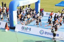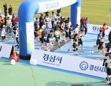 뉴스다 류대현 기자 | 경산시는 23일 경산시민운동장에서 전국 마라톤 동호인 900여 명이 참가한 가운데 '시민 건강과 지역발전이 함께 뛰는 마라톤 축제'라는 슬로건으로“2025 경산 삼성현 전국 마라톤대회”를 개최했다. 삼성현 전국 마라톤대회는 경산시체육회 주최, 경산시육상연맹 주관으로, 경산시민운동장에서 출발하여 (구)미래대 삼거리, 대구한의대 삼거리, 경산중앙병원 네거리를 지나 경산시민운동장에 도착하는 10km 코스로, 남녀 개인전 및 단체전으로 경기를 진행했다. 경산시는 경산경찰서, 경산소방서, 모범운전자회, 자원봉사센터 등 유관 기관의 협력과 시민들의 사전 대회 안내를 통해 마라톤 구간 교통 통제에 따른 불편을 최소화했으며, 또한 당일 130여 명의 안전요원을 배치하여 도로 교통 통제와 코스 안내 등으로 안전하게 대회를 마무리했다. 대회 결과, 남자부는 부산진구 감진규 선수가 32분 55초로 우승했고 2위는 창원시 김종진, 3위는 영천시 김기원 선수가 차지했으며, 여자부는 달성군 정순연 선수가 37분 14초로 우승했고 2위는 경산시 정혜진, 3위는 울산 중구 원주원 선수가 차지했다. 조