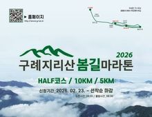 뉴스다 류대현 기자 | 전남 구례군은 아름다운 자연환경을 배경으로 한 ‘제1회 구례 지리산봄길 마라톤대회’가 오는 5월 2일 구례공설운동장에서 개최된다고 밝혔다. 이번 대회는 오마이뉴스 광주전라본부와 구례군육상연맹이 주최·주관하고 구례군이 후원하는 행사로 마라톤 종목 저변 확대와 구례 지역 홍보를 위해 마련됐다. 대회종목은 하프코스(21.0975km), 10km, 5km 총 3개 부문이다. 참가자들은 오전 8시 30분부터 순차적으로 출발해 지리산의 봄 풍경을 따라 달리게 된다. 참가 신청은 2월 23일부터 공식 홈페이지를 통해 접수를 시작하며, 모집 인원 4,000명 선착순으로 마감된다. 또한 원활한 대회 운영을 위해 자원봉사자도 함께 모집한다. 구례군 관계자는 “제1회 대회인 만큼 참가자 모두가 만족할 수 있도록 지원을 아끼지 않겠다”며 “지역 주민과 전국의 참가자들이 함께 어우러지는 건강과 문화의 축제로 자리매김하길 바란다”고 말했다.