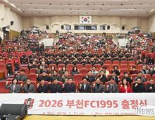 뉴스다 류대현 기자 | 부천FC1995가 22일 부천시청에서 2026시즌 출정식을 열고 창단 첫 K리그1 시즌을 앞둔 각오를 시민들과 함께 다졌다. 부천시는 오는 3월 1일 K리그1 개막전을 치르는 구단이 1부리그에서 당당히 경쟁할 수 있도록 지원하는 동시에, 경기 관람과 문화 체험, 소비가 이어지는 ‘스포츠 기반 지역경제 활성화’를 본격화할 계획이다. ◇ 팬·시민 열기로 가득했던 ‘K리그1 첫 시즌 출정식’ 성황 속 마무리 부천FC1995는 이번 출정식에서 사상 첫 K리그1 무대를 앞두고 구단주와 주요 내빈, 프로·유소년 선수단, 시민과 팬들이 한자리에 모인 가운데 출사표를 던졌다. 시청 로비에서는 한지호·백동규·바사니 등 주요 선수들의 팬 사인회와 스톱워치 이벤트, 포토존 등 장외 프로그램이 열려 현장 분위기를 달궜다. 본 행사에서는 김규민·성신·이충현 등 유망주를 꾸준히 배출해 온 유소년 선수단을 시작으로 프로 선수단과 스태프가 차례로 소개됐다. 부천시는 유소년부터 1군까지 이어지는 축구 생태계를 꾸준히 강조해 왔으며, 지난해에는 부천FC1995 U-18팀이 제47회 문화체육관광부장관배 전국고등학교 축