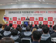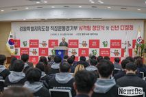 뉴스다 류대현 기자 | 강원특별자치도는 2월 23일 오후 3시 도청 별관 대회의실에서 ‘강원특별자치도청 사격팀’ 공식 창단식을 개최했다. 이번 창단은 1987년 펜싱팀 창단 이후 12번째이자, 2020년 루지팀 창단 이후 6년 만에 새롭게 출범한 도청 직장운동경기부다. 이로써, 도내 사격 실업팀은 도청, 정선, 고성 등 총 3개 팀으로 확대됐으며, 유소년부터 실업팀까지 이어지는 계열화 체계를 더욱 공고히 하게 됐다. 이는 지역 인재가 타시도로 유출되지 않고 고향에서 선수 생활을 이어갈 수 있는 기반을 마련했다는 점에서 의미가 크다. 또한, 선수단 전원이 강원 연고자로 구성돼 지역 체육의 성장 모델을 보여주고 있으며, 강원의 체육 인프라 속에서 성장한 선수들이 강원특별자치도의 이름을 달고 승리의 과녁을 정조준하게 됐다. 도는 최근 제106회 전국체전 종합 6위 달성, 전국장애인동계체전 사상 첫 종합우승 등 강원 체육의 상승세를 이어가고 있다. 사격팀은 이러한 흐름을 바탕으로 제107회 전국체육대회에서 ‘종합 6위 수성’의 핵심 동력이 될 것으로 기대된다. 아울