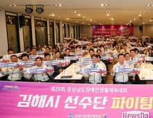 뉴스다 류대현 기자 | 김해시장애인체육회는 16일 김해 라페스타뷔페에서 제29회 경상남도장애인생활체육대회에 참가하는 김해시 선수단 결단식을 개최했다. 이날 행사에는 신대호 김해시 부시장, 안선환 김해시의회 의장, 황재환 김해시장애인체육회 상임부회장을 비롯해 선수단과 관계자 등 200여명이 참석해 필승의 각오를 다졌다. 오는 23, 24일 양일간 함안군, 창년군 일원에서 개최되는 이번 대회에 김해시 선수단은 28종목 중 바둑, 보치아 2종목을 제외한 전 종목에 선수 338명, 감독·보호자 64명 총 402명이 출전한다. 슐런, 조정, 플라잉디스크, 육상 등 다양한 종목에서 우수한 성적을 거둬 종합 3위를 목표로 하고 있다. 신 부시장(김해시장 권한대행)은 “무엇보다 부상 없는 안전한 경기를 치르는 것이 최우선”이라며 “우리 시를 대표하는 선수단들이 승패를 떠나 스스로의 잠재력을 마음껏 발산하는 시간이 되길 바란다”고 말했다.