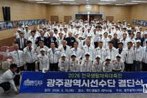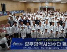 뉴스다 류대현 기자 | 광주광역시체육회(회장 전갑수)가 16일 오후 국민생활관 세미나실에서 ‘전국생활체육대축전’에 참가하는 선수단의 선전을 기원하는 결단식을 개최했다. 이날 결단식에는 전갑수 광주광역시체육회장을 비롯해 구제길 동구체육회장, 정천규 서구체육회장, 정희환 북구체육회장, 배영모 광산구체육회장, 광주광역시체육회 윤웅철, 박종규 부회장 등 종목단체 관계자 180여명이 참석해 선수단의 선전을 기원했다. 이날 행사는 선수단의 훈련 모습과 주요 활약상을 담은 영상시청을 시작으로 참가계획 보고, 선수대표 선서와 단복전달식 순으로 진행됐다. 선수 선서에는 당구 박종문(79세) 선수와 체조 전양숙(74세) 선수가 함께 나서 선수단의 힘찬 각오를 밝혔다. 오는 23일부터 경상남도 김해시 일원에서 열리는 ‘2026 전국생활체육대축전’에는 축구, 탁구, 파크골프 등 31개 종목 700명(선수 626, 임원 74)의 선수단이 참가할 예정이다. 전갑수 체육회장은 “이번 결단식은 3년 만에 개최되는 뜻깊은 자리로, 광주선수단이 한자리에 모여 결의를 다지는 의미 있는 시간”이라며 “안전을 최우선으로 생각하며 광