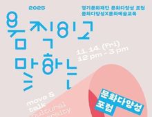 뉴스다 최광묵 기자 | 다가오는 11월 14일, 경기문화재단(대표이사 유정주)은 문화다양성 가치의 확산과 실천을 위한 ‘움직이고 말하는 문화다양성 포럼’을 수원 경기상상캠퍼스에서 개최한다. 경기문화재단 예술교육팀에서는 도민의 삶과 일상으로 스며드는 문화다양성 가치 확산을 목표로 문화다양성 촉진 사업을 공모와 교육 등의 형태로 추진하고 있다. 2025년 경기문화재단 문화다양성 포럼은 문화다양성 또는 문화예술교육 관련 활동에 참여한 경험이 있거나 관심 있는 이들을 참여 대상으로 하며, 직접 ‘움직이고’ 주제별로 함께 ‘말하는’ 형태로 구성됐다. ‘움직이고 말하는 문화다양성 포럼’은 크게 네트워킹과 포럼으로 나누어 진행한다. 네트워킹은 점심과 함께 고민을 나누는 시간으로 마련했으며, 이후 세 가지 포럼이 순차적으로 이어진다. 첫 번째 ‘움직이는 포럼’에서 참여자는 장애인 당사자들과 움직임, 춤으로 만나온 최원 강사(모두의춤 원댄스)와 함께 내 몸의 감각을 깨우는 시간을 가진다. 두 번째 ‘움직이고 말하는 포럼’은 3개의 주제로 나누어 진행하며, 참여자는 참여 신청 시 주제 하나를 선택하여야 한다. 주제별 전문가