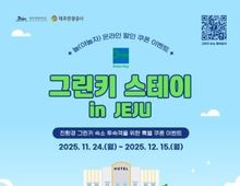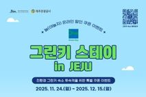 뉴스다 최광묵 기자 | 제주특별자치도와 제주관광공사(사장 고승철)는 오는 24일부터 12월 15일까지 환경친화적 경영활동을 실천하는 사업장에 부여하는 ‘그린키(Green Key)’ 국제인증을 획득한 도내 13개 숙박업소를 대상으로 온·오프라인 통합 이벤트를 진행한다고 19일 밝혔다. 이번 이벤트는 그린키 인증 숙소의 홍보 강화와 더불어 제주를 찾는 여행객들이 보다 쉽게 친환경 숙소를 이용할 수 있도록 편의를 제공하기 위해 추진하는 가운데 도와 공사는 국내 대표 OTA(온라인 여행사) 플랫폼인 ‘놀’을 통해 총 2,000만원 규모의 숙박 할인 쿠폰을 선착순으로 제공하는 ‘그린키 스테이 in JEJU’ 기획전을 진행할 예정이다. 할인 대상은 제주지역 그린키 인증 숙소로 한정되며, 투숙 가능 기간은 2026년 1월 31일까지다. 제주지역 그린키 인증 숙소는 총 13개소로, △그라벨호텔 △그랜드하얏트 제주 △머큐어앰배서더 제주 △베스트웨스턴 제주 △신라호텔제주 △에코그린리조트 △에코랜드호텔 △에코촌유스호스텔 △제주신화월드 △한화리조트 제주 △해비치 호텔&리조트 제주 △JW메리어트 제주 리조트&스파 △WE 호텔 등이
