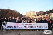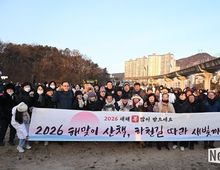 뉴스다 최광묵 기자 | 의정부시의회는 지난 1일 병오년 새해를 맞아 지역 주민들과 함께 걸으며 희망찬 2026년을 시작할 수 있도록 ‘해맞이 산책, 하천길 따라 새빛정원까지’ 신년 해맞이 행사에 참석했다. 이번 행사는 ▲호원 생활체조광장에서 출발해 ▲신의교~신곡교 중간지점 벽천분수 ▲동오역 생활체조광장 ▲경기도청 북부청사역 인근 벽천분수를 거쳐 ▲신곡새빛정원까지 이어지는 릴레이 산책 코스로 진행됐다. 해맞이 행사에는 시민들과 함께했으며, 15개 동 통장협의회가 행사 준비와 운영에 참여해 중랑천, 부용천 산책로를 걸으며 새해에도 시민들과의 공동체 의식을 함양하고자 마련됐다. 김연균 의장을 비롯한 권안나 부의장과 의정부시장, 의정부시통장협의회 등이 참석했다. 행사에 참석한 의원들은 “희망과 도약을 상징하는 붉은 말의 해를 맞아 시민들과 첫 해맞이를 함께하게 되어 더없이 기쁘다며” “올 한 해 더욱 시민들의 목소리에 귀 기울이고 함께 공감·소통하며, 의정부시의 발전을 이끄는 의정부시의회가 되도록 노력하겠다”고 전했다.