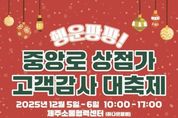 뉴스다 최광묵 기자 | 제주시는 12월 5일과 6일 오전 10시부터 오후 5시까지 중앙로 상점가 일대에서 ‘행운팡팡! 고객감사 대축제’가 개최된다고 밝혔다. 행사 기간 구매 영수증 경품 추첨 이벤트, 버스킹 공연, 키즈마켓데이 이벤트, 각종 미니게임 등 다채로운 프로그램과 다양한 볼거리, 즐길거리가 마련돼 도민과 관광객이 함께하는 지역 축제가 될 전망이다. 이번 행사는 중소벤처기업부 공모사업으로 선정돼 올해부터 추진 중인 ‘상권활성화사업’의 일환으로, 제주원도심활성화자율상권조합과 함께 원도심 상권인 중앙로 상점가에 활기를 불어넣기 위해 마련됐다. ‘상권활성화사업’은 지역 상권을 자율상권구역으로 지정하면 자율상권조합이 중심이 되어 핵심 콘텐츠와 특화 상품을 개발해 특색있는 상권을 조성하고 운영하는 사업이다. 제주시 칠성로·중앙로·중앙지하상가는 2024년 중소벤처기업부 공모를 통해 자율상권으로 선정됐다. 제주시는 2025년부터 2029년까지 최대 100억 원을 투입해 원도심 지역경제 활성화를 위한 각종 특화 사업과 시설 개선을 추진할 계획이다. 올해는 사업의 기반을 다지는 해로 제주여행