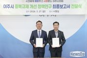 뉴스다 최광묵 기자 | 여주시의회가 2025년 추진한 ‘여주시 중복규제 개선 정책연구’ 보고서를 집행부에 전달하여 향후 규제개선 추진을 위한 협력 기반이 마련됐다. 여주시의회는 3월 27일 오전 시장실에서 '여주시 중복규제 개선 정책연구' 최종보고서 전달식을 개최했다고 밝혔다. 이날 전달식에는 이충우 여주시장을 비롯한 집행부 관계자와 여주시의회 박두형 의장, 연구수행기관 관계자 등이 참석해 연구결과를 공유하고 정책 반영 방안을 논의했다. 이번 연구는 여주시의회 의원연구단체인 '여주시 중복규제 개선 정책 연구모임'이 주관해 2025년 6월부터 약 6개월간 수행됐으며, 수도권정비계획법과 한강수계법 등 중첩 규제로 인한 지역 발전 제한 문제를 분석하고 합리적인 개선 방안을 도출하는 데 목적을 두고 추진됐다. 여주시의회 박두형 의장은 “연구단체 보고서 전달은 중복규제 개선을 위한 실질적인 출발점이라는 점에서 의미가 있다”며 “연구 결과가 효과적인 정책으로 이어질 수 있도록 집행부의 적극적인 검토를 당부한다”고 말했다. 이충우 여주시장은 “환경부 등 관계기관에 실효성 있는 규제 개선을 적극 건의하겠다”고