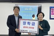 뉴스다 최광묵 기자 | 라의숙 군포시 궁내동통장협의회장은 10월 1일 군포e비즈니스고등학교에 장학금을 전달하며 지역 청소년들의 꿈을 응원하는 뜻깊은 나눔을 실천했다. 이번 장학금은 라의숙 통장이 ‘궁내동 마을의제 발굴 경진대회’에서 금상을 수상하며 받은 상금 50만원 전액을 기부한 것으로 지역사회 발전을 위한 아이디어가 다시 지역 인재를 위한 지원으로 이어졌다는 점에서 더욱 의미가 깊다. 장학금은 군포e비즈니스고등학교 내 우수한 학생들에게 수여될 예정이다. 라의숙 통장은 평소 지역사회를 위한 다양한 활동에 앞장서며 교육·복지·공익 분야에서 꾸준한 기여를 이어오고 있다. 이번 장학금 기부 역시 지역 청소년들의 학업과 미래를 응원하는 실천적 나눔의 일환으로 그녀의 지역사랑이 고스란히 담겨 있다. 라의숙 회장은 “마을을 위한 고민이 다시 학생들을 위한 희망으로 이어져 기쁘다”며 “앞으로도 지역 청소년들을 위해 학생들의 학업 성취를 응원하는 지속적인 나눔활동과 관심을 이어가겠다”고 전했다.