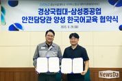 뉴스다 최광묵 기자 | 경상국립대학교 RISE사업단 산학친화프로그램과 삼성중공업은 9월 29일 오후 가좌캠퍼스 언어교육실 국제교육부처장실에서 외국인 근로자의 안전한 근로환경 조성과 지역사회 정주 여건 조성을 위해 ‘외국인 근로자 대상 한국어 교육체계 구축에 관한 업무협약’을 체결했다. 이 협약은 경상국립대학교 RISE사업단의 지역 연계협력 강화의 일환으로, 삼성중공업에 근무하는 외국인 근로자의 안전 역량을 강화하고 지역사회 적응을 돕기 위한 한국어 교육체계를 산학 공동으로 개발·운영하기 위한 것이다. 이를 통해 산업현장 맞춤형 실용 한국어 교육 프로그램을 개발하고 산학협력에 기초한 유기적인 교육지원 체계를 구축할 수 있을 것으로 기대된다. 이날 협약체결식에는 경상국립대학교 RISE사업단 산학친화프로그램 부수현 책임교수, 국어교육학과 유해준 교수와 삼성중공업 이상억 총무팀장 등 7명이 참석했다. 행사는 전체 사업 소개, 협약 내용 설명, 협약서 서명, 기념촬영 등의 순으로 진행됐다. 양 기관은 협약서에서 ▲외국인 근로자 대상 한국어 교육 프로그램 개발 및 운영 ▲외국인 안전담당관 양성 및 한국어 교육 기반 안