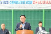 뉴스다 최광묵 기자 | 수원특례시의회는 9월 24일 만석공원 테니스장에서 열린 ‘제3회 수원특례시의회 의장배 시니어 테니스대회 개회식’ 참석했다. 이번 대회는 테니스를 사랑하는 시니어 동호인들이 한자리에 모여 기량을 겨루고 화합하는 자리로 마련됐다. 개회식에는 이재식 의장을 비롯해 오세철 예산결산특별위원장, 김동은 의원, 이재선 의원, 현경환 의원, 수원시 체육회 관계자 등이 함께해 선수들을 격려했다. 이재식 의장은 축사에서 “오늘은 테니스를 사랑하는 분들이 모두 모인 뜻깊은 날”이라며 “양일간의 대회가 부상 없이 안전하게 마무리되길 바라며, 여러분 모두의 승승장구를 힘껏 응원하겠다”고 말했다. 이어 “수원특례시의회는 시민들께서 생활체육을 통해 활기차고 건강한 일상을 누리실 수 있도록 적극 지원하겠다”고 덧붙였다.