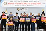 뉴스다 최광묵 기자 | 화성특례시의회 수원 군공항 화성시 이전 반대 특별위원회는 10일 대회의실에서 수원시의 『수원군공항 이전 국가전략사업 추진』 및 『범정부 수원군공항 이전 TF 구성』 건의에 대한 반대 규탄 결의문을 발표했다. 이날 김영수 공동위원장은 규탄 결의 취지 발표를 통해 “수원시장은 지난해 12월 8일 화성시와 어떠한 협의도 없이 ‘수원 군공항 이전 국가전략 사업화를 위한 공동건의문’을 국방부에 전달하고, 올해 1월에는 국무총리에게 ‘수원군공항 이전 국가전략사업 추진’을 건의했다”며 “이는 정부 주도로 추진 중인 광주 군공항 이전 TF에 편승해 수원 군공항의 화성시 이전을 국가 책임 사업으로 전환하려는 편법적 시도”라고 강하게 비판했다. 이어 정흥범 공동위원장은 결의문 낭독을 통해 “수원 군공항 이전 사업은 화성시와 화성 시민의 협의와 동의 없이 비민주적인 절차로 추진되고 있으며, 법적·절차적 정당성이 결여된 사업”이라며 “이는 화성시의 자치권을 심각하게 침해하는 사안으로, 결코 국가 주도 사업으로 추진될 수 없다”고 강조했다. 또한 정흥범 위원장은 “화옹지구 인근 우정읍 매향리는 과거 미 공군 폭격훈련장으로 사용되며 극심한 소음과 인명 피해를