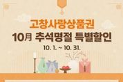 뉴스다 최광묵 기자 | 고창군이 추석을 맞아 군민 생활안정과 지역경제 활성화를 위해 ‘고창사랑상품권 특별할인 행사’를 진행한다. 이번 행사는 10월 한 달간 진행된다. 이번 특별할인은 △상품권 구매시 10% 선할인 △고창사랑카드 결제시 10% 캐시백 적립을 통해 최대 20% 혜택을 받을 수 있도록 구성됐다. 특히, 월 구매한도를 100만 원까지 확대해 군민들의 혜택을 더욱 강화했다. 예를 들어, 10만원 상품권 구매 시 10%(1만 원) 선할인을 적용받아 9만원에 구매하고, 이후 고창사랑카드로 결제하면 결제금액의 10%가 캐시백으로 적립돼 실질적으로 최대 20% 혜택을 누릴 수 있다. 다만, 선할인(10%)이 적용된 금액은 캐시백 적립 대상에서 제외된다. 심덕섭 고창군수는 “이번 추석 명절 특별 할인을 통해 군민들께는 생활비 부담을 덜어드리고, 지역 소상공인들에게는 매출 증대 효과가 기대된다”며 “특히, 군에서 지급하는 군민활력지원금과 정부의 민생소비쿠폰이 더해져 군민 모두가 더욱 넉넉한 추석 명절을 보내시길 바란다”고 밝혔다. 한편, 고창사랑상품권은 전통시장과 지역 내