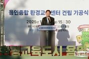 뉴스다 최광묵 기자 | 용인특례시는 14일 오후 처인구 포곡읍 용인레스피아(231-1번지)에 있는 ‘용인종합 환경교육센터’ 기공식을 열었다고 15일 밝혔다. 2027년 6월 준공을 목표로 공사가 진행될 예정인 ‘용인종합 환경교육센터’는 2027년 하반기 시범운영을 거쳐 정식 개관할 예정이다. ‘용인종합 환경교육센터’는 총 사업비 199억원(시비 199억원·한강수계기금 80억원)이 투입되며, 지하 1층, 지상 3층 연면적 2702㎡ 규모로 조성될 예정이며, ▲강당 ▲학습실 ▲유아교육실 ▲전시실 ▲소모임실 등 다양한 교육·체험 공간을 갖췄다. 건물은 에너지효율 1등급을 목표로 한 ‘넷제로(Net-Zero) 건축물’로 설계해 태양광 발전 등 친환경 에너지 기술이 적용된다. 이 곳에서는 ▲환경실천 시민견학 및 체험교육 ▲환경교육 교재 및 프로그램 개발·보급 ▲환경전문가 양성과 활용 ▲학교·사회환경교육 활성화 지원 등의 프로그램이 마련돼 ‘One-Stop 환경교육 거점시설’ 기능을 수행할 것으로 기대된다. 이상일 시장은 축사에서 “민선8기 시장으로 취임한 뒤인 2022년 10월 용인특례시는