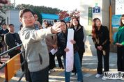 뉴스다 최광묵 기자 | 이상일 용인특례시장이 14일 오후 처인구 포곡읍에 있는 포곡초등학교를 방문해 학교 관계자와 학부모들을 만나 학생들의 안전한 통학환경 조성과 교육 발전 방안을 논의했다. 이 시장은 9월 30일 열린 처인구 초등학교 학부모 간담회에 참석한 포곡초등학교 학부모 회장의 학교 방문 요청을 받아들여 이날 학교를 찾았다. 이 시장을 만난 포곡초 학부모들은 ‘초곡초 학생들을 사랑하는 이상일 용인시장의 방문을 환영한다’라는 문구가 적힌 플래카드로 환영 의사를 표했다. 이상일 시장은 포곡초등학교 학부모 회장이 요청한 후문 통학로 개선, 소방도로 공사 마무리 상황 등에 대한 현장 보고를 받았다. 시는 학교 후문 통학로와 관련해 상가와 교회를 출입하는 차량의 통행에 방해되지 않는 구간에 시선유도봉을 설치했고, 소방도로 공사를 마무리하고 표지판도 이동 요청했다. 이 시장은 현장에 나온 학교 관계자·학부모들과 운동장과 주차장 부근에 학생들을 위한 승하차 공간을 만들 수 있는지에 대한 의견도 나눴다. 이 시장은 학교 운동장 옆의 ‘도시계획도로 소로2-10’가 학교 주차장 쪽