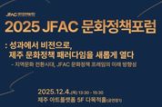 뉴스다 최광묵 기자 | 제주문화예술재단(이사장 김석윤)은 '다시 심는 성과, 피어나는 비전'이라는 슬로건으로 '2025년 재단 성과공유주간(이하 성과공유주간)'을 개최한다. 프로그램은 제주아트플랫폼(5층)에서 12월 4일부터 6일까지 3일간 진행된다. 이번 성과공유주간은 2025년 한 해의 재단 지원을 받아 이루어진 예술창작 활동과 도민 문화 참여 활동의 결실을 함께 확인할 수 있는 자리이다. 아울러 지역문화 전환 시대에 재단의 문화정책 미래 방향에 대한 담론을 나누는 시간도 마련한다. 세부 프로그램으로는 ▲문화정책포럼, ▲예술활동 쇼케이스, ▲전시, ▲도민 체험프로그램으로 문화예술을 사랑하는 도민, 예술인 누구나 참여할 수 있다. 문화정책포럼은 〈성과에서 비전으로, 제주 문화정책 패러다임을 새롭게 열다〉를 주제로 개최한다. 포럼은 ▲기조발제 ‘키워드로 보는 지역문화 정책 방향(장세길 전북연구원 선임연구위원)’, ▲주제발표① ‘생활문화예술활동 지원 성과로 보는 미래 정책적 역할(현혜경 제주연구원 부연구위원)’, ▲주제발표② ‘서울 ’新대학로 시대‘ 사례로 보는 물리적 거점 기반 시민 문화참여권 확대 방안(장재환 서울문