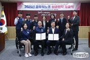 뉴스다 최광묵 기자 | 의왕시가 11월 14일 시청 중회의실에서 공무직 대표노조인 공공운수노동조합 전국자치단체공무직본부 경기지역지부 의왕시지회(지회장 이태겸)와 2025년 임금협약을 체결했다. 이날 체결식에는 김성제 시장, 이태겸 의왕시지회장 등 양측 교섭대표와 교섭위원 12명이 참석했다. 올해 임금 협약은 지난 7월 교섭을 시작해 10월까지 총 4차례의 교섭 및 실무협의를 통해 이뤄졌으며, 주요 내용으로는 ▲전년 대비 기본급 3% 인상 ▲직종별 호봉 정액 추가 인상 ▲기본급에 대한 호봉 간 격차 일괄 인상 등이 포함됐다. 김성제 시장은 “이번 임금 협약은 노사 간 상호 존중과 협력을 바탕으로 이뤄진 의미 있는 결과”라며 “앞으로도 공무직 근로자들이 시민들에게 질 높은 행정서비스를 제공해 주기를 기대한다”고 말했다. 이태겸 회장은 “시 재정 상황이 여의치 않음에도 불구하고, 대화와 협의를 통해 원만한 결과를 도출하게 돼 기쁘다”며“앞으로도 시와 상생하는 노사관계를 이어가겠다”고 밝혔다.