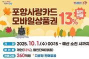 뉴스다 최광묵 기자 | 포항시는 추석 명절 지역경제 활력 제고를 위해 내달 1일부터 카드형·모바일 포항사랑상품권(이하 포항사랑카드)을 260억 원 규모로 13% 할인 판매한다. 시는 지난 9일 발행한 600억 원 규모 상품권이 완판됨에 따라, 내달에도 13% 할인 판매를 통해 시민과 소상공인들에게 직접적인 혜택을 제공하고, 지역 골목상권 소비 촉진의 마중물 효과를 이어가겠다는 방침이다. 올해 포항시는 당초 목표보다 500억 원 확대한 총 3,000억 원 규모의 상품권을 발행한다. 연말까지 매월 초 상품권을 발행하며 13% 할인율을 유지해 지역 자금 역외 유출을 막고 소상공인 매출 증대, 지역경제 선순환 구조 강화에 기여할 계획이다. 개인별 구매 한도는 월 50만 원, 보유 한도는 100만 원으로 조정된다. 개인을 대상으로만 할인하고, 지류형은 판매하지 않는다. 상품권은 10월 1일 0시 15분부터 모바일 앱 ‘iM샵’에서 충전할 수 있으며, 104개 판매대행 금융기관 영업점에서도 영업시간 내 충전이 가능하다. 포항사랑카드는 실물카드 결제 외에도 ▲삼성페이 ▲네이버페이