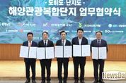 뉴스다 최광묵 기자 | 당진시가 도비도와 난지도 일대 해양관관복합단지 조성에 본격 박차를 가한다. 시는 9월 24일 충남도청 대회의실에서 오성환 당진시장, 김태흠 도지사, 김인중 한국농어촌공사사장, 인장환 ㈜도비도특구개발 대표이사, 김호석 대일레저개발(주) 회장이 참석한 가운데‘도비도-난지도 해양관광복합단지 조성 업무협약’을 체결했다고 밝혔다. 이번 협약은 도비도-난지도 해양관광복합단지 조성 사업의 성공적인 추진과 이를 위한 각 기관의 역할을 공고히 하기 위해 마련된 것으로, 각 기관과 기업은 특구 지정 및 관광사업 조성을 위해 적극 협력할 것을 약속했다. 시는 이번 협약을 통해 해양 치유 콘텐츠 특구와 난지도 해양레저타운을 조성함으로써 경제적 파급효과와 고용창출 효과를 거두고, 서해안 랜드마크와 관광벨트의 초석이 될 것으로 보고 있다. 오성환 당진시장은 “지난 1년 7개월의 시간 동안 민간제안자 선정과 중앙부처, 충청남도, 한국농어촌공사와 지속적으로 업무협의를 하며 열심히 달려왔다”며 “서해안의 대표 명소로 거듭날 수 있도록 시민들과 끊임없이 소통하며 모두가 만족할 수 있는 해양관광복합단지를