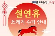 뉴스다 최광묵 기자 | 고양특례시는 설 연휴를 앞두고 시민들이 깨끗하고 쾌적한 환경에서 명절을 보낼 수 있도록 ‘설 연휴 생활쓰레기 관리대책’을 마련하고 비상 대응체계를 운영한다. 연휴 기간인 2월 14일부터 18일까지 시는 상황반과 기동청소반을 운영해 쓰레기 관련 민원과 긴급 상황에 신속히 대응한다. 특히 연휴 중 무단 방치된 쓰레기는 발견 즉시 수거해 시민 불편이 발생하지 않도록 할 계획이다. 또한 상습 무단투기 지역을 집중 점검하고 단속을 병행하는 한편, 올바른 쓰레기 배출 방법과 배출일 준수에 대한 홍보도 강화한다. 다만 2월 15일부터 17일까지는 수거업체 휴무로 생활쓰레기 수거가 진행되지 않는다. 시 관계자는“연휴 기간 배출일을 지키지 않을 경우 쓰레기가 장기간 방치될 수 있어 시민들의 협조가 무엇보다 중요하다”며, “쓰레기는 반드시 수거일 전날 일몰 이후에 배출해 달라”고 당부했다. 이어“시민 여러분께서도 음식물쓰레기 줄이기와 재활용품 분리배출에 적극 동참해 주시면 더욱 깨끗한 명절을 보낼 수 있을 것”이라고 강조했다. 시는 앞으로도 시민 생활과 밀접한 청소