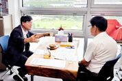 뉴스다 최광묵 기자 | 변광용 거제시장은 23일 국회를 찾아 김태선 국회의원(울산 동구), 민주당 최고위원 서삼석 의원을 차례로 만나 조선업 외국인 쿼터제 축소, 한·아세안 국가정원 조성사업 재추진 방안에 대해 각각 논의했다. 먼저, 국회 환경노동위원회 소속 김태선 국회의원과 만난 변 시장은 조선업 외국인 쿼터제 축소와 조선산업기본법 제정에 대해 의견을 나눴다. 거제시와 울산 동구는 대표적인 조선업 도시로 숙련공 이탈과 외국인 노동자 의존 심화로 인한 인구감소와 지역경제 불황이라는 공통의 문제를 겪고 있다. 이날 면담에서는 외국인 의존도를 줄이기 위한 △외국인 쿼터제 축소(현행 30%→20%) 및 지자체 사전 협의 제도 신설, △내국인 인력 양성 강화 및 지원 확대, △원·하청 노동자 간 차별 처우 금지, △이주노동자의 정주 여건 개선 등을 집중 논의했다. 변광용 시장은 “지역경제와 조선산업의 미래는 외국인 노동자 의존도를 줄이고 내국인 인력을 확보하는 데 달려있다”며, 외국인 쿼터제 축소를 위한 공동 기자회견을 제안했다. 김태선 국회의원은 “울산도 거제와 마찬가지로 외국인 인력