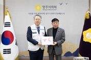 뉴스다 최광묵 기자 | 윤창철 양주시의회 의장은 29일 오후, 의장실에서 대한적십자사 경기도지사 우광호 사무처장에게 ‘2026년 적십자 특별회비’를 전달했다. 이날 전달식에는 대한적십자사 경기도지사 이계선 정기후원팀장, 나형진 북부봉사관장을 비롯해 대한적십자사봉사회 박주수 경기도협의회장과 정진수 양주시협의회장 등 9명이 참석했다. 특히, 윤창철 의장은 전달식을 마친 뒤 우광호 사무처장 등 적십자사 관계자들과 지역의 회비 모금 확대와 봉사활동 활성화 방안에 대해 의견을 교환했다. 양주시의회는 복지 사각지대에 놓인 취약계층을 지원하고 긴급재난구호와 공공의료, 국제협력 등 대한적십자사의 다양한 인도주의 활동에 동참하기 위해 매년 특별회비를 전달하고 있다. 이날 건넨 적십자회비는 위기에 처한 이재민과 저소득층 구호 사업, 사회봉사 사업, 지역 보건 및 혈액 사업 등에 쓰일 예정이다. 윤창철 의장은 “다양한 구호사업으로 숭고한 인도주의를 몸소 실천해 온 적십자 회원들의 노고에 항상 감사드린다”며 “양주시의회도 소외계층 지원 등 따뜻한 나눔문화 확산을 위해 지속적으로 노력하겠다”고 말했다.