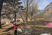 뉴스다 최광묵 기자 | 경기도는 13일 포천시 일동원 기산리 일원에서 포천시, 소방서, 경찰서 등 유관기관이 참여한 산불진화통합훈련을 실시했다. 도는 건조주의보와 강풍특보가 발효된 포천시에 쓰레기소각으로 추정되는 산불이 강한 바람의 영향으로 100ha(1㎢) 이상 대형산불로 확대된 구체적인 상황을 가정했다. 지상에서는 산불진화차를 배치해 산불 초기대응과 대형산불 차단을 위한 방어선 구축 등에 집중했다. 공중에서는 산불임차 헬기 1대와 드론을 활용한 소화탄을 시연해 산불 현장의 공중지원 능력을 높이는 훈련으로 이뤄졌다. 특히 봄철 훈련과는 달리 주민대피 훈련도 함께 진행됐다. 봄철 영남권의 초고속, 초대형 산불로 인한 인명피해를 방지하기 위한 것이다. 이태선 경기도 산림녹지과장은 “초고속‧대형 산불로부터 소중한 도민의 생명과 산림을 보호하기 위해 주민 대피와 산불 초동진화 등 실전 같은 대응 훈련을 했다는데 큰 의미가 있다”며 “가을철 도내 산불 피해가 최소화될 수 있도록 철저하게 준비하겠다”고 말했다. 한편 경기도는 가을철 산불방지대책본부를 지난달 20일부터 약 10일