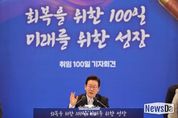 뉴스다 최광묵 기자 | 이재명 대통령은 11일 "오늘부터 임기 마지막 날까지 '국민이 주인인 나라, 함께 행복한 대한민국'을 만드는 길에 매진하겠다"고 밝혔다. 이 대통령은 이날 오전 10시 청와대 영빈관에서 '회복을 위한 100일, 미래를 위한 성장'을 주제로 열린 취임 100일 기자회견에서 "앞으로 남은 4년 9개월은 '도약과 성장의 시간'"이라며 이같이 말했다. 이 대통령은 "인수위도 없이 출범한 정부가 이제 본격적인 출발선에 섰다"며 "우리 경제가 다시 성장하고, 대한민국이 힘차게 도약할 수 있도록 총력을 기울이겠다"고 밝혔다. 이어 "세계를 이끄는 혁신경제로 '진짜 성장'을 추진하고, 성장의 결실을 국민 모두가 나누는 '모두의 성장'을 이뤄내겠다"며 "기본이 튼튼한 사회를 구축해 국민의 삶도 빈틈없이 지켜내겠다"고 말했다. 이 대통령은 "당당한 실용외교로 세계 속에서 우뚝 서고 국민의 평화로운 일상을 지켜내겠다"며 "모든 국민을 아우르고 섬기는 '모두의 대통령'이 되겠다는 약속에 따라 통합의 정치와 통합의 국정으로 나아가겠다"고 밝혔다. 또 "외교 정상화에 만족하지 않고,