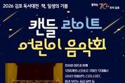 뉴스다 최광묵 기자 | 김포시 도서관은 2026 김포 독서대전의 시작을 알리는 공연으로 '캔들 라이트 어린이 음악회'를 2026년 3월 12일 19시 10분부터 20시 10분까지 모담도서관 1층 다목적강당에서 진행한다. 봄빛이 스며들듯 1200~1300개의 LED캔들을 켜고 앙상블 여운팀이 디즈디 메들리와 지브리 메들리, 어린이들이 따라 부를 수 있는 인기 동요를 연주한다. 또한 공연이 끝나면 '모아봐요 스탬프북'을 배포하여 올해 김포시 도서관에서 진행하는 독서문화진흥 프로그램을 참여 후 스탬프를 모아 2026 김포 독서대전 행사에서 활용할 수 있도록 안내한다. 도서관 관계자는 “이번 공연은 2026 김포 독서대전을 알리고, 어린이와 가족들이 도서관에서 다양한 독서 활동과 행사를 참여 할 수 있도록 응원하는 자리로, 김포시 도서관은 올해 독서대전 슬로건 '책, 일생의 기쁨'에 맞게 전 연령층이 함께할 수 있는 독서문화진흥 프로그램을 기획할 예정”이라고 말했다. 참여 신청은 2026년 2월 24일 10시부터 김포시 통합예약 누리집 (모집/행사)에서 진행한다.
