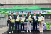 뉴스다 최광묵 기자 | 천안시는 지역 대표 농특산물인 ‘포도’의 우수성을 널리 알리기 위해 19일 신부동 아라리오 광장에서 ‘천안시 포도 직거래 판촉 행사’를 개최했다. 이번 행사는 본격적인 포도 출하시기에 맞춰 시중가보다 저렴한 가격으로 천안산 포도를 공급하고 지역 농가의 소득 향상과 판로 확대에 기여하고자 마련됐다. 행사 당일 성거농협이 직접 참여해 갓 수확한 포도를 시중가 대비 저렴하게 판매했으며, 많은 시민이 행사장을 찾아 천안 포도의 우수성을 직접 체험했다. 이명열 농업환경국장은 “이번 행사를 통해 소비자에게 신선하고 안전한 천안 포도를 합리적인 가격에 제공하고, 생산농가에는 소득 증대와 판로 확대의 기회가 됐다”며,“앞으로도 천안시 대표 농산물의 경쟁력을 높이기 위해 다양한 직거래 행사를 지속적으로 추진해 나가겠다”고 말했다.