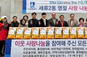 뉴스다 최광묵 기자 | 지난 11일, 수원시 권선구 세류2동은 설 명절을 맞이하여 사랑 나눔 전달식을 개최했다. 이날 마련된 후원 물품은 취약계층 약 379 가구에 직접 전달될 예정으로 지역사회에 사랑이 전해지는 명절이 될 것으로 기대된다. 이번 전달식에는 세류2동 주민자치회, 통장협의회, 새마을부녀회, 새마을문고, 바르게살기위원회, 자유총연맹, 체육진흥회, 방위협의회, 지역사회보장협의체 등 9개 단체의 단체장과 ㈜대일실업, ㈜광신이 참여했다. 이와 함께 MG세화새마을금고, ㈜에코월드, 영광광고기획 등 지역 내 여러 기관과 개인 후원자의 사랑 나눔도 더해져 행사에 의미를 더했다. 변영호 세류2동장은 “어려운 시기에 지역사회 관심으로 사랑 나눔에 참여해 주신 단체(기관)에 감사드리며, 앞으로도 유관 기관과 적극 협력으로 행복과 웃음이 피어나는 정겨운 세류2동을 만들기 위해 최선을 다하겠다”라고 말했다.