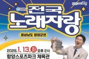 뉴스다 최광묵 기자 | 대한민국 대표 전국민 참여 노래 경연 프로그램인 ‘KBS 전국노래자랑’ 함양군편이 함양스포츠파크체육관 준공을 기념해 2026년 1월 13일, 새롭게 준공된 함양스포츠파크체육관에서 개최된다. 이번 행사는 체육관의 성공적인 준공을 축하함과 동시에 지역 주민 간 소통과 화합을 도모하기 위해 마련됐으며, 함양군민을 비롯해 함양 소재 사업자, 직장인, 학생 등 누구나 참여할 수 있다. 참가 희망자는 2025년 12월 22일부터 2026년 1월 7일까지 읍·면 행정복지센터와 함양군청 문화체육과를 방문해 접수하거나, 이메일을 통해 신청하면 된다. 예심은 2026년 1월 11일 오후 1시, 함양군 고운체육관에서 진행될 예정이며, 예심을 통과한 참가자들이 본선 무대에 올라 노래 실력을 겨루게 된다. 이번 KBS 전국노래자랑 함양군편은 남녀노소에게 큰 사랑을 받는 진행자 남희석의 사회로 진행되며, 초대 가수로 배일호, 현숙, 강문경, 미스김, 성민지 등이 출연해 다채로운 무대를 선보일 예정이다. 함양군 관계자는 “이번 행사가 지역 문화예술 향유 기회를 넓히는 것은 물론, 군민