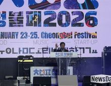 뉴스다 최광묵 기자 | 청양 지역의 겨울 풍경을 바꾸는 새로운 축제, 제1회 청불페가 23일 화려한 막을 올렸다. 충남도립대학교와 청양군이 함께 준비한 제1회 청불페(청양의 청춘은 항상 승리한다)가 이날 충남도립대학교 대운동장에서 개막식을 열고, 청양의 겨울 밤을 가장 뜨거운 무대로 바꾸기 시작했다. 이날 개막식에는 양노열 기획홍보처장을 비롯한 김돈곤 청양군수, 김기준 청양군의회 의원, 이정우 도의원 등 지역 주요 인사와 대학 관계자, 주민, 관람객이 참석한 가운데 진행됐다. 개막 선언과 함께 화려한 조명 연출이 공연장을 밝히며 축제의 시작을 알렸고, 현장은 관람객들의 환호와 박수로 가득 찼다. 추운 날씨에도 불구하고 가족 단위 방문객과 청년 관람객들의 발길이 이어지며, 청불페에 대한 높은 관심을 실감케 했다. 첫날 무대는 DJ 일렉트로닉 공연을 중심으로 강렬하게 펼쳐졌다. KK, 로즈퀸(with 지니), 도미노보이즈, YOSE가 차례로 무대에 올라 클럽형 조명과 레이저, 미디어 퍼포먼스가 어우러진 공연을 선보이며 청양의 겨울밤을 단숨에 달궜다. 청양에서는