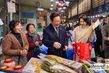 뉴스다 최광묵 기자 | 이재명 대통령과 김혜경 여사는 오늘 낮, 설 명절을 앞두고 충북 충주시에 위치한 무학시장을 찾아 지역 세밑 물가를 점검하고 상인들을 만나 현장 의견을 청취했다. 무학시장은 지난 1978년 노점상들의 정착을 위해 개설된 전통시장이며, 이번 방문은 설 민심을 청취하기 위한 민생 행보의 일환이다. 이 대통령과 김 여사는 시장 내 여러 상점을 들러 “새해 복 많이 받으세요”라며 인사를 했고, 상인과 시민들은 환호와 박수로 이 대통령 부부를 맞았다. 이 대통령 부부에게 더덕을 판매한 상인은 “덕분에 마수걸이를 한다”며 “오늘 장사가 잘될 것 같다”고 말해 웃음을 자아냈다. 다른 상인들도 “힘나게 해주셔서 감사하다”, “너무 고생 많으시다”며 인사를 전했다. 이 대통령 부부는 황태포, 시금치, 곶감과 깐밤 등 제수용품과 먹거리를 구입했고 백도라지, 마른 멸치, 배추전 등을 즉석에서 맛보기도 했다. 이 대통령 부부는 온누리상품권과 현금으로 결제했다. 김 여사가 물건을 고르는 사이 이 대통령은 상인들에게 “장사는 잘 되느냐”, “곧 설인데 어떠시냐”고 물었다. 정육점 사장은