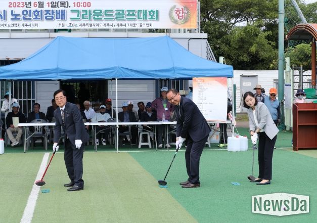 뉴스다 최광묵 기자 | 강병삼 제주시장은 6월 1일 제주시 사라봉 축구장에서 열린 2023년 제2회 노인회장배 그라운드골프 대회에 참석해 어르신과 관계자를 격려했다.