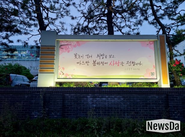 뉴스다 최광묵 기자 | 수원시가 2023년 수원희망글판 여름편 문안 ‘괜찮아. 누군가는 있어. 더우면 더 뜨거운 열정으로 꿈을 향해 달려봐!’를 8월까지 수원시 곳곳과 수원시 유튜브 채널에 게시한다.